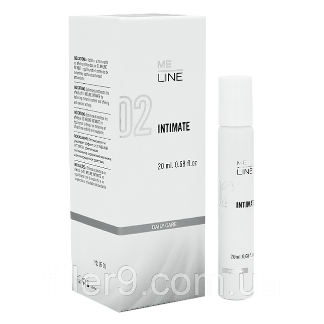 Професійна терапія гіперпігментації ME LINE. Склад: Транексамова кислота — 15%, Меланостатин — 5%, Ніацинамід — 5%, Аскорбінова кислота — 4%, Арбутин — 4%, лактобіонова кислота — 3%, Фітинова кислота — 2%, Койова кислота — 2%, Ретиналь — 0,1%. Комбінація активних інгредієнтів у високих концентраціях оптимізує, зберігає і збільшує ефекти, створені препаратом 01 ME LINE INTIMATE. Застосовується з 4 дня після проф. процедури щодня до 60 днів. Зона застосування: Тіло.